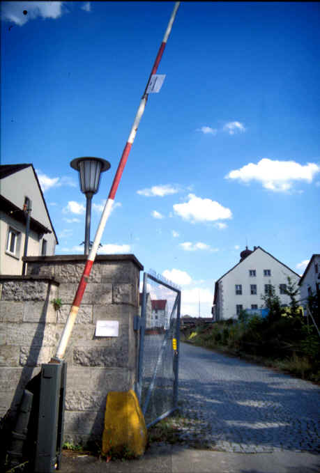 Wachgebäude 400 mit Schlagbaum. Blick O.